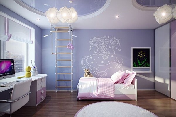 - استعمال جبس بورد على هيئة مربعات ثلاثية الأبعاد مع بعض الألوان الجذابة التي منها البنفسجي والأصفر.